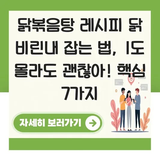 이 방법은 "매콤 닭볶음탕 레시피, 우유없이 잡내 제거하는 방법" 뉴스에서도 우유 없이 닭 잡내를 잡는 핵심 방법으로 제시된 바 있습니다.